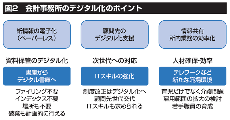 調査結果を踏まえた会計事務所のデジタル化のポイントは以下の3点です(図2)。