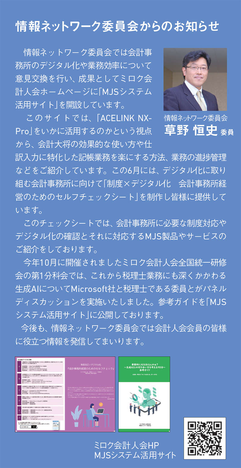 令和4年度(2022年度)の税理士法改正で会計事務所のデジタル化対応が義務づけられました。デジタル化と 一口で言っても書類のペーパーレス化をはじめ、セキュリティ、テレワーク環境の整備など、やるべきことは多岐にわたります。 本特集では会計事務所業務のデジタル化に向けた第一歩について、MJS清水 直美理事部長が解説します。